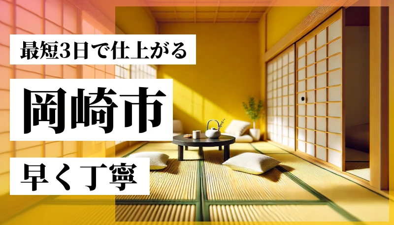 岡崎市には、畳1枚3,000円から張替えができる業者があります。一般的な畳の張替え料金が4,000円〜15,000円といわれる中では、かなりリーズナブルな価格帯です。