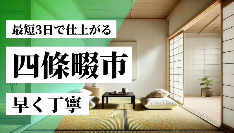 四條畷市では、表替え1畳3,000円から対応可能な店舗もあり、意外と手が届きやすいサービスです。
